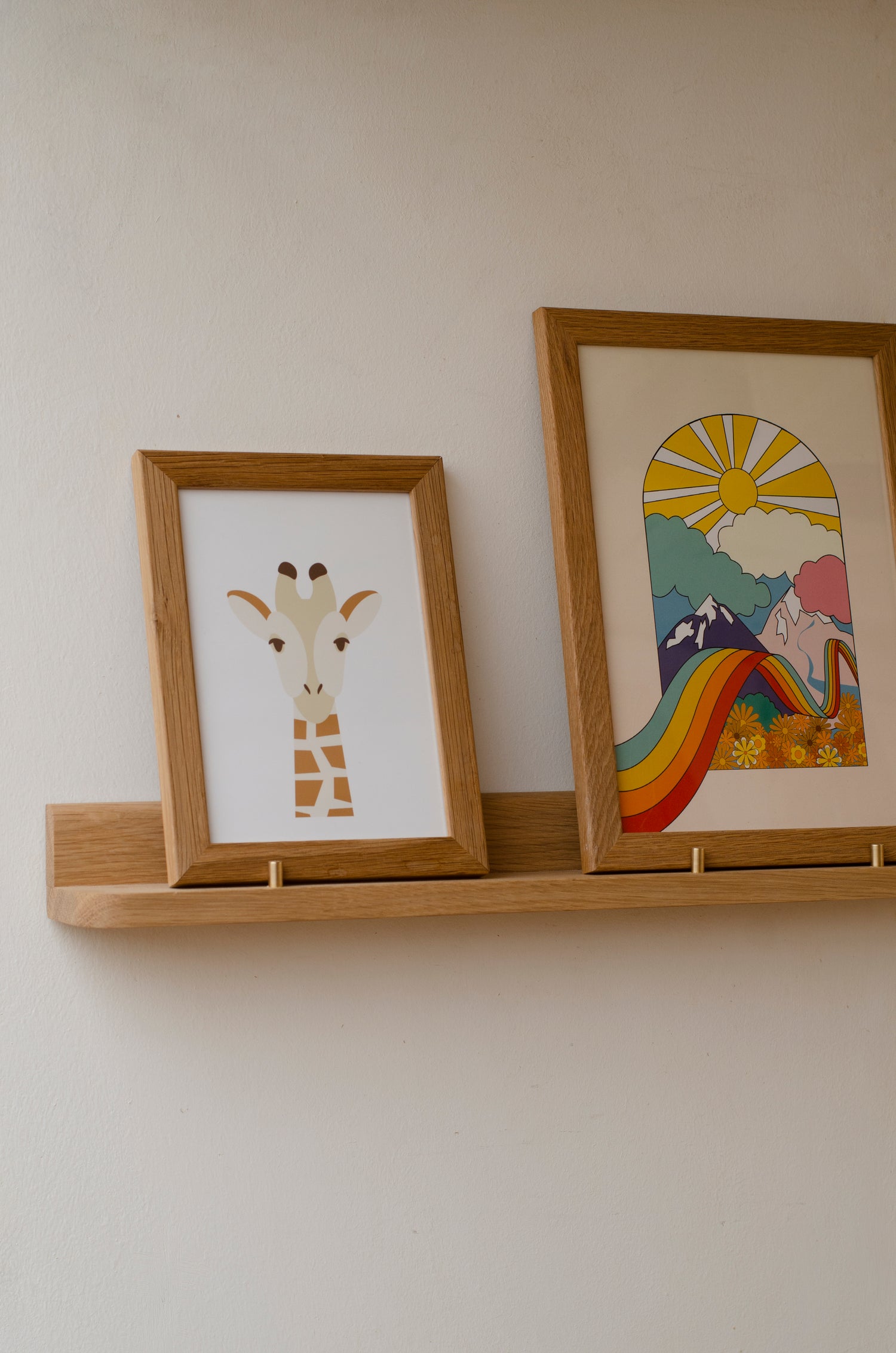 Our take on a typical picture shelf. By rounding edges and curving corners, we have designed a refined and considered picture shelf, perfect for those interiors looking for a more high end or hand crafted aesthetic. The shelf is elegantly finished off with a with a series of brass stops, replacing the usual lip to support picture frames.